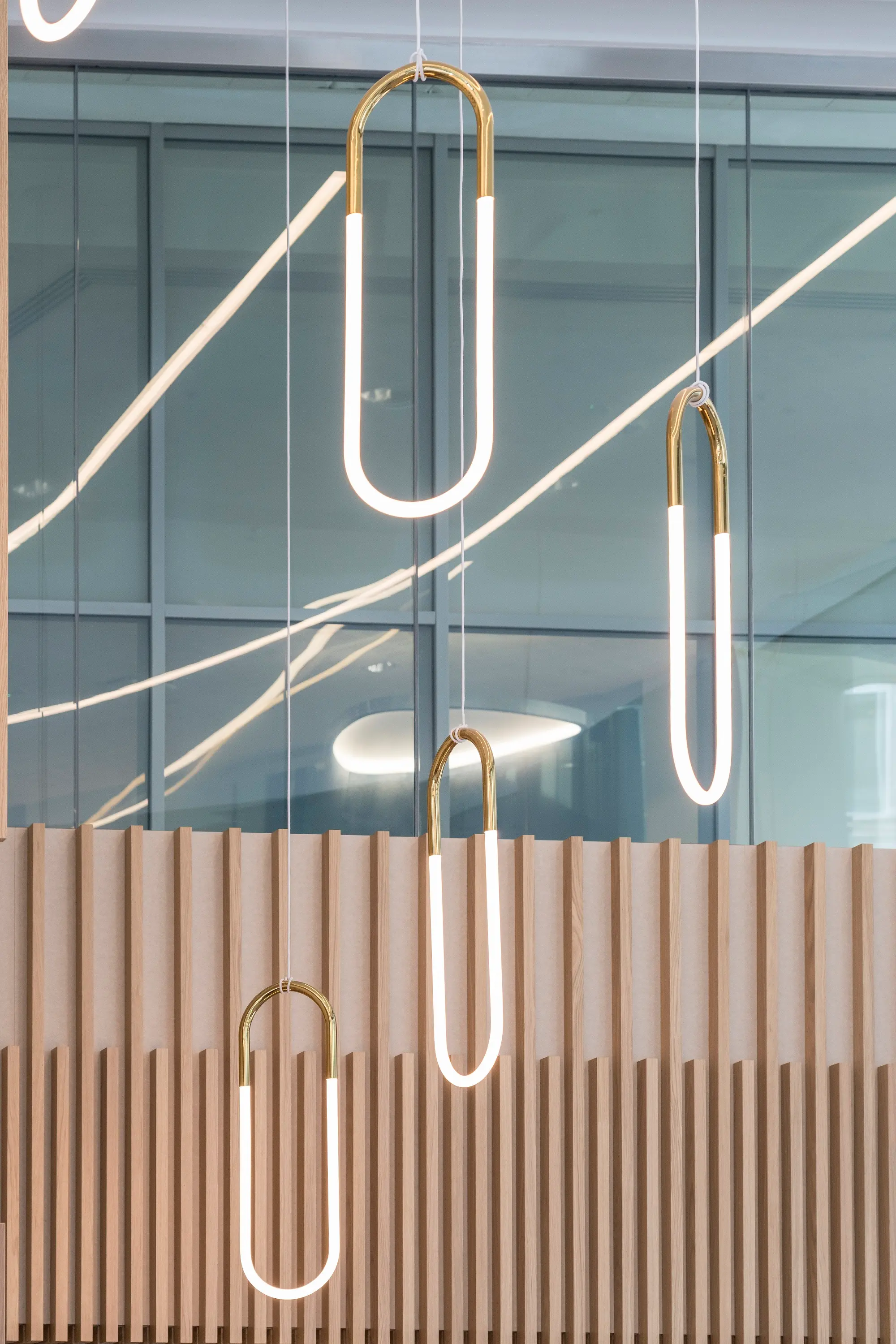 In this era of re-use, our design sustainably retains the original Portland stone cladding of the primary core and overlays a palette of warm timber, natural-based fabrics and earthy-red concretes - a radical change from the previous fit-out.