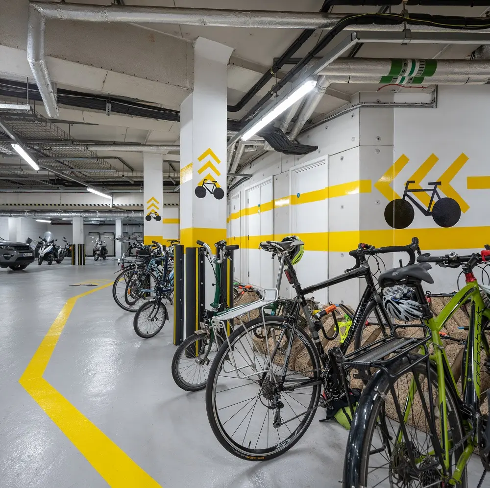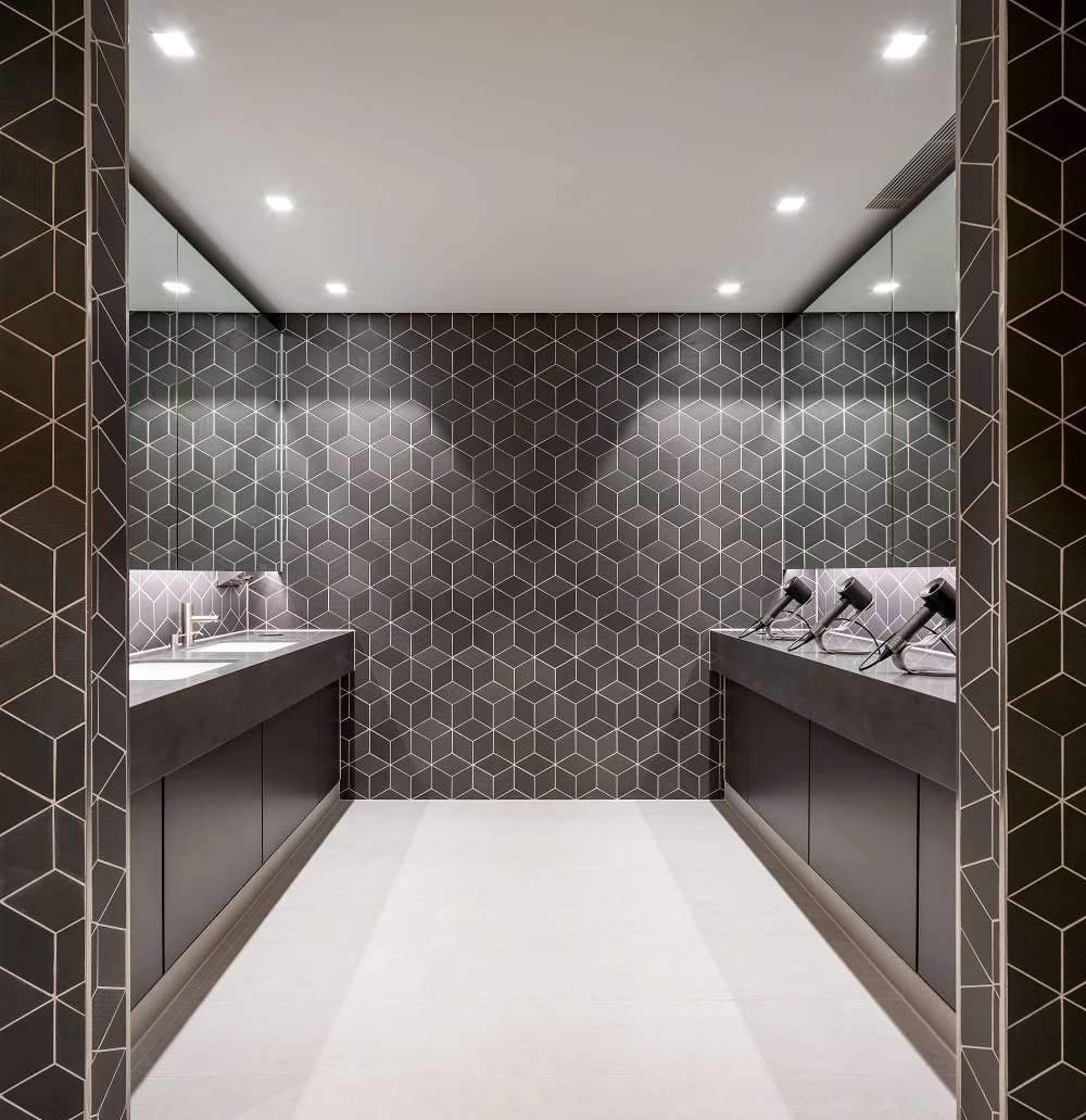 Under-utilised areas of the existing basement, including loading bays, parking bays, building core elements and office floor areas, were reconfigured to house the additional facilities which feature spacious shower and changing cubicles, expanded bicycle parking, a bicycle repair area and dedicated WCs for cyclists, runners and office tenants.
